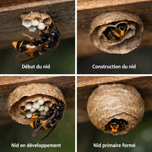 Voici un reportage montrant l’évolution du premier nid (nid primaire) fabriqué par la reine.
